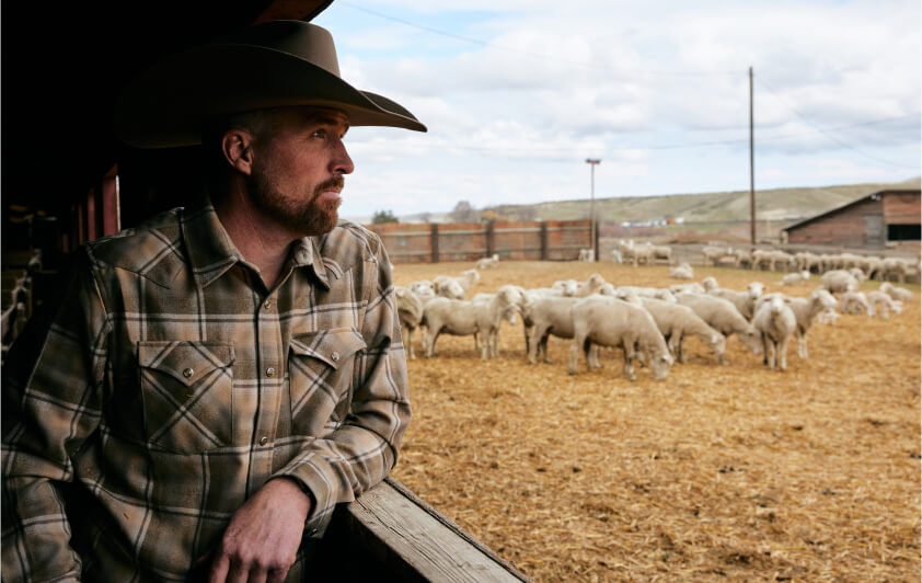 All of our USA wool is grown west of the Mississippi, much of it in Eastern Oregon. Here, Cameron Krebs surveys his family’s ranch, which has been providing Pendleton with wool for five generations.